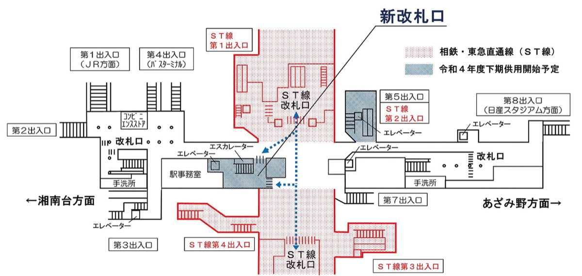 同路線で現在新駅の地下工事などが進められている新横浜駅では、市営地下鉄新横浜駅に開通に合わせた新しい改札口の整備を進めることがこのほど決まった。これは、地下4階に建設中の新駅と市営地下鉄とのスムーズな乗り換えを実現するため。