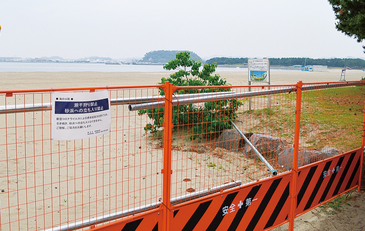 金沢地先埋立事業の一環として88年に整備された同公園は、市内で唯一の海水浴場を持つ公園。約1Kmにわたる砂浜にはカニやアサリなど多くの生き物が生息し、4、5月のシーズンになると潮干狩りで賑わいを見せる。例年1日で約4万人以上訪れることから、今年は4月9日から砂浜を閉鎖し、6月30日まで潮干狩りを禁止している。