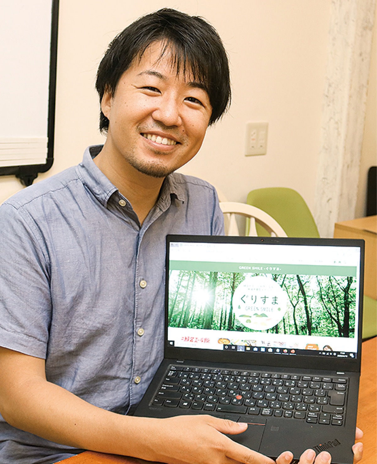 渋谷にあるWeb制作の会社で働く荒井一樹さん(36)=写真=は実家でもある中山の有限会社荒井電気商会の経営も手伝っている。同社は地域密着の企業。本業と並行して家業を手伝うなかで出会った緑区の魅力ある場所や人を紹介したいと、昨年10月、地域密着メディア「ぐりすま(GREEN SMILE)」を立ち上げた。イベント情報などを掲載して閲覧数も徐々に増加。サイトに載せる情報を集めるうちに飲食店の関係者などとも親交を深めていた。