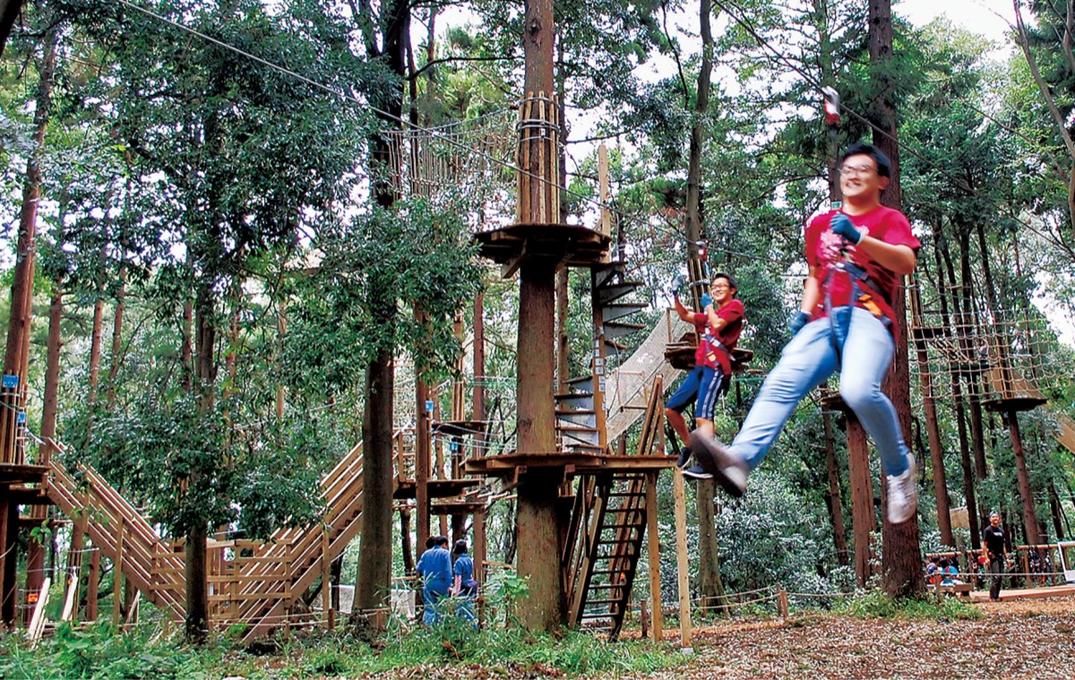 里山ガーデン(上白根町)内の常設アスレチック施設「フォレストアドベンチャー・よこはま」=写真=とマウンテンバイクMTBコース「トレイルアドベンチャー・よこはま」から、無料招待券が抽選で各施設5組10人にプレゼントされる。