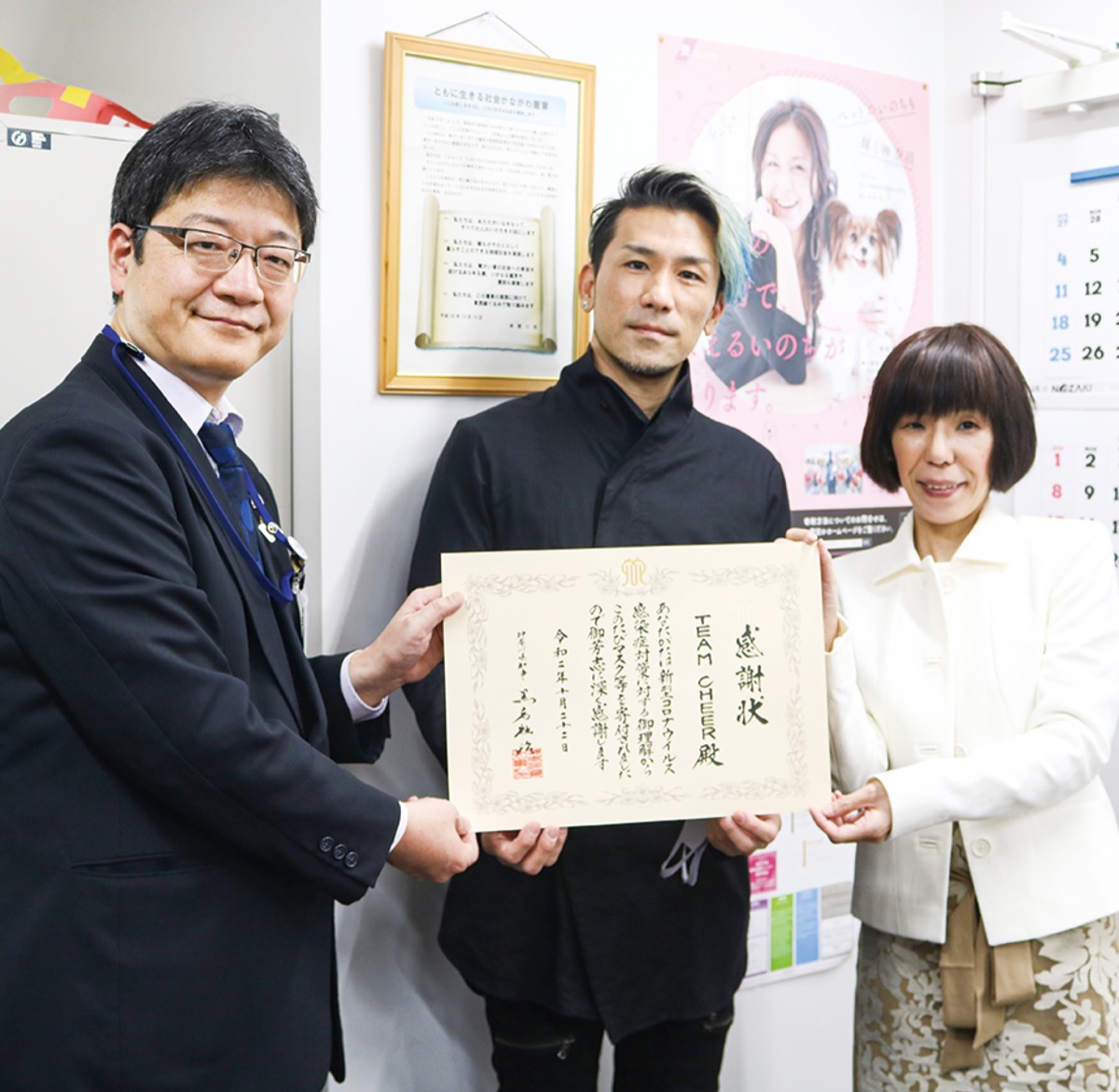 医療用のサージカルマスク2万枚とアイソレーションガウン800枚を神奈川県に寄付したとして、支援金を集めた団体「TEAM CEER」は22日、県庁で感謝状を受け取った。