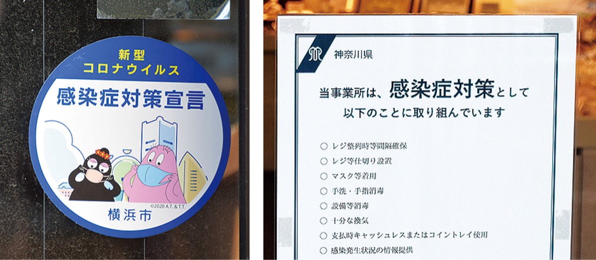 新型コロナウイルス感染防止対策として、神奈川県感染防止対策取組書や、横浜市の感染症対策宣言ステッカーの掲示を加盟店に推奨している。