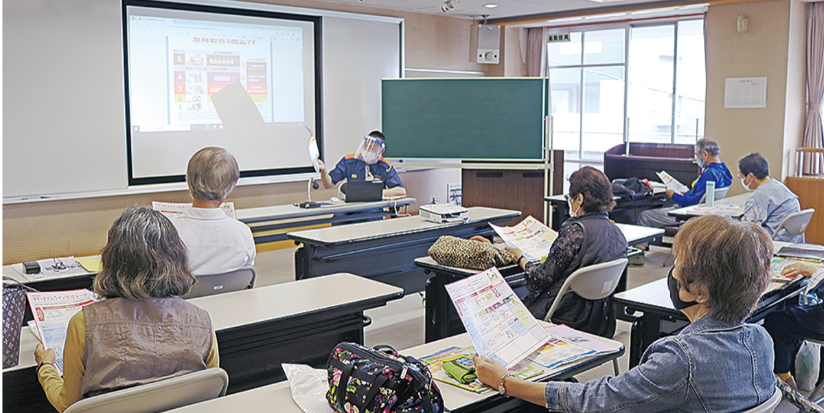 その後は、緑消防署の署員が「高齢者に多い事故とその予防、防火・防災・減災」をテーマに講演していた。