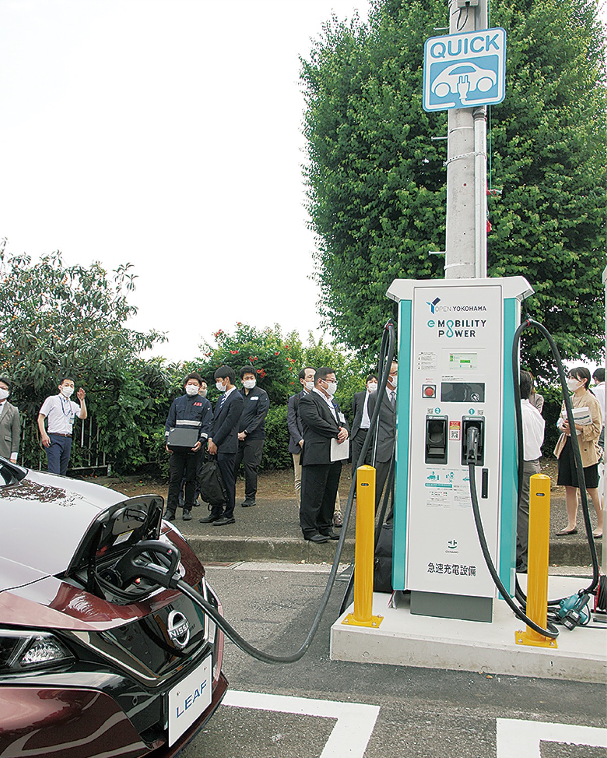 横浜市と(株)e-Mobility Powerは6月8日、EV充電器を公道上に設置する全国初の実証実験を青葉区内で始めた。来年3月31日まで安全性や利便性などを確認するのが目的。電気自動車(EV)やプラグインハイブリッド車(PHV)に乗りやすい環境の整備につながるか、注目されている。