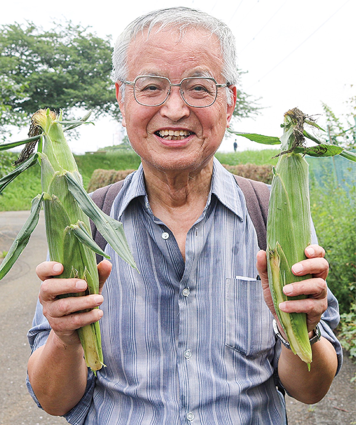 当日は16人が参加。地元農家の大久保和義さん(67)からトウモロコシの収穫方法を伝えられると、早速、畑へ。汗を流しながら、10本程度収穫を行っていた。参加した荒舩正三さん(71)は「家族と一緒に食べるのが楽しみ」と笑顔だった。
