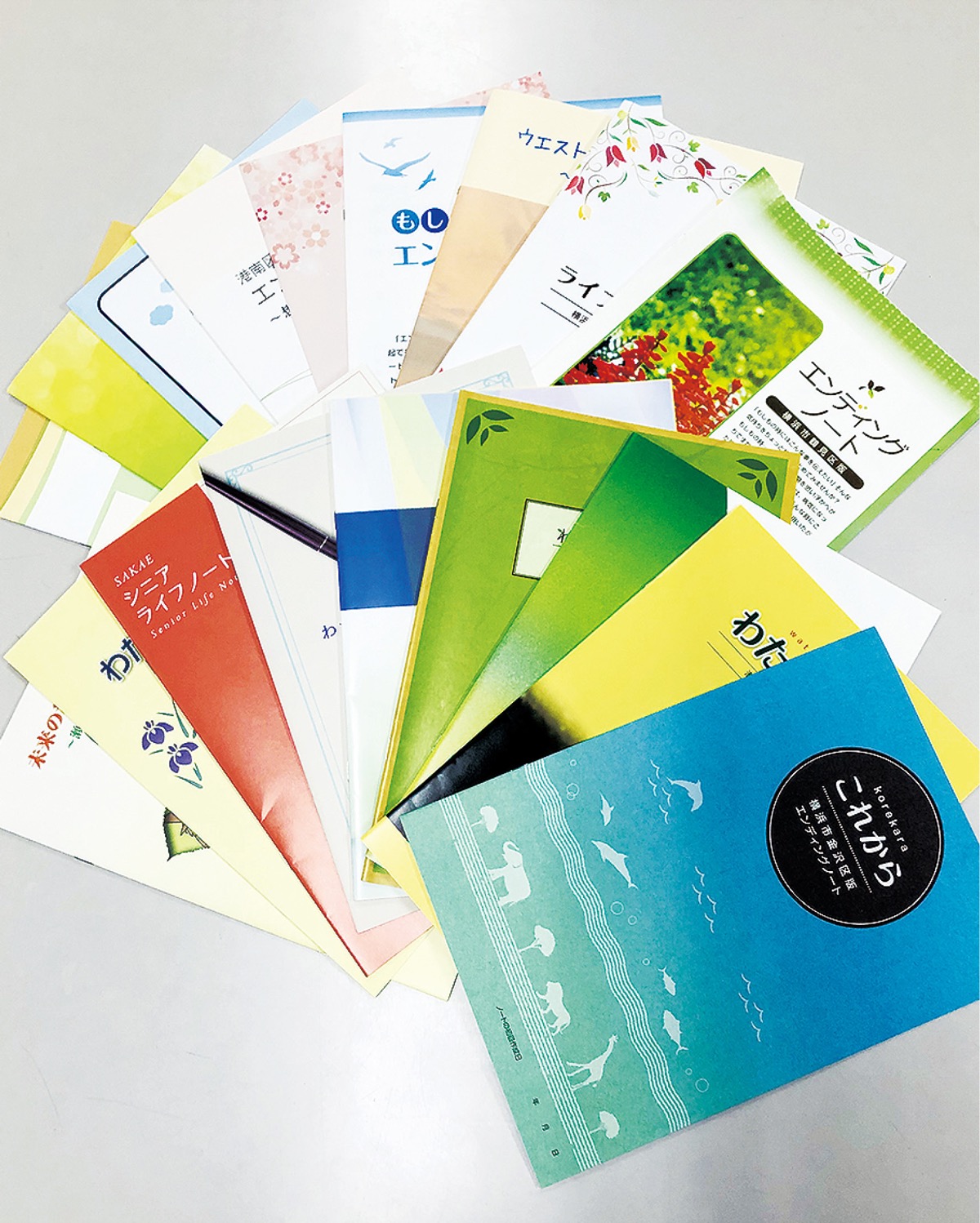 これまでの人生を振り返り、これからの人生をどう歩みたいかなど、自分の思いを記すエンディングノート。横浜市では区ごとにオリジナルのエンディングノート=左写真=を作成している。市民からは「自分を見つめ直せた」「前向きに人生を過ごしたい」などの声が聞かれている。エンディングノートは、各区役所の高齢・障害支援課や地域ケアプラザなどの窓口で無料で配布中。終活の内容だけでなく、これからの暮らしを前向きに考えてもらおうと、健康作りや介護、成年後見制度などの情報も合わせて提供している。問い合わせは、緑区役所高齢・障害支援課【電話】045・930・2311へ。