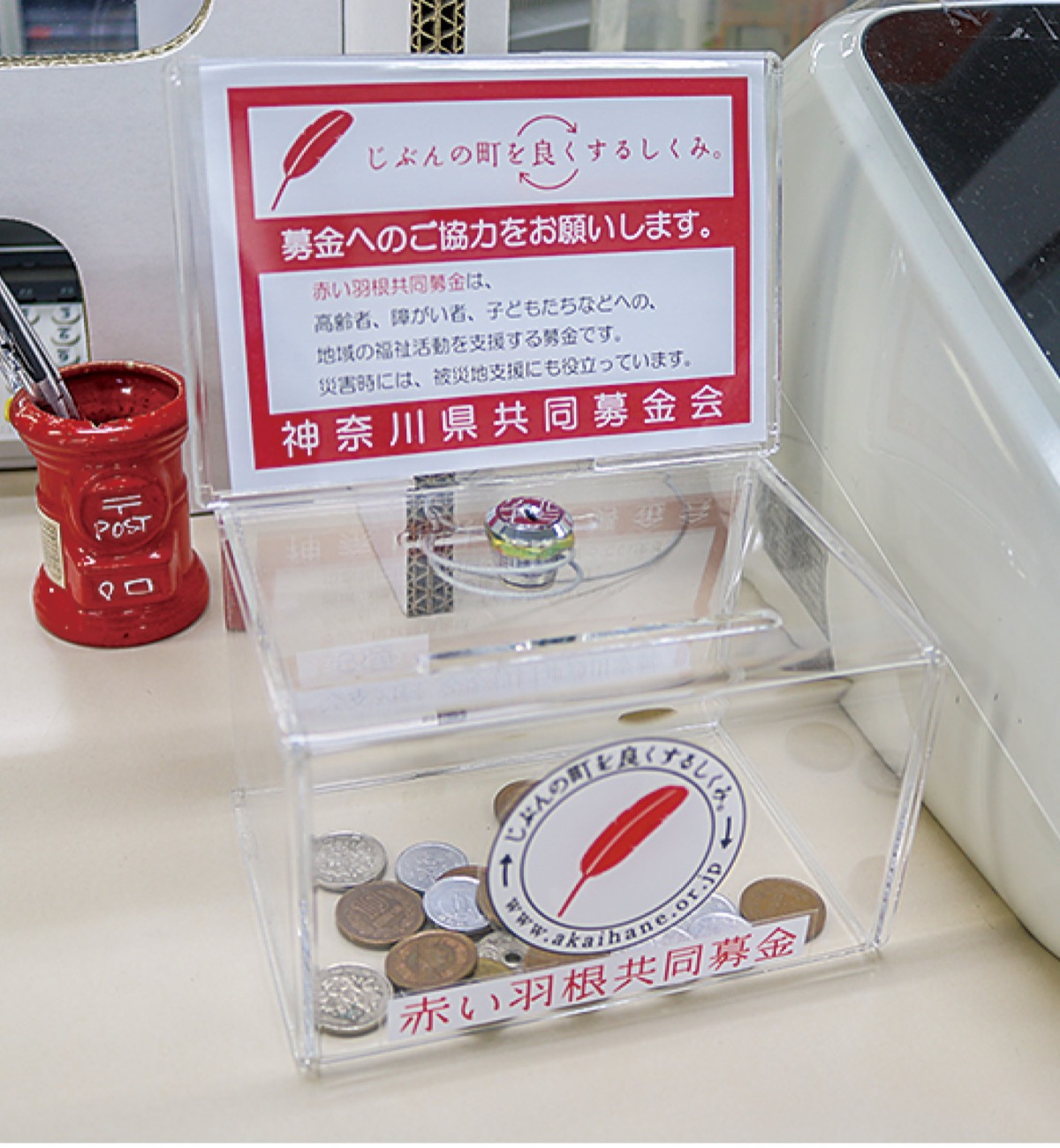 10月1日から始まった赤い羽根共同募金。初めての試みとして、今年から区内の10郵便局にも募金箱が設置されている。