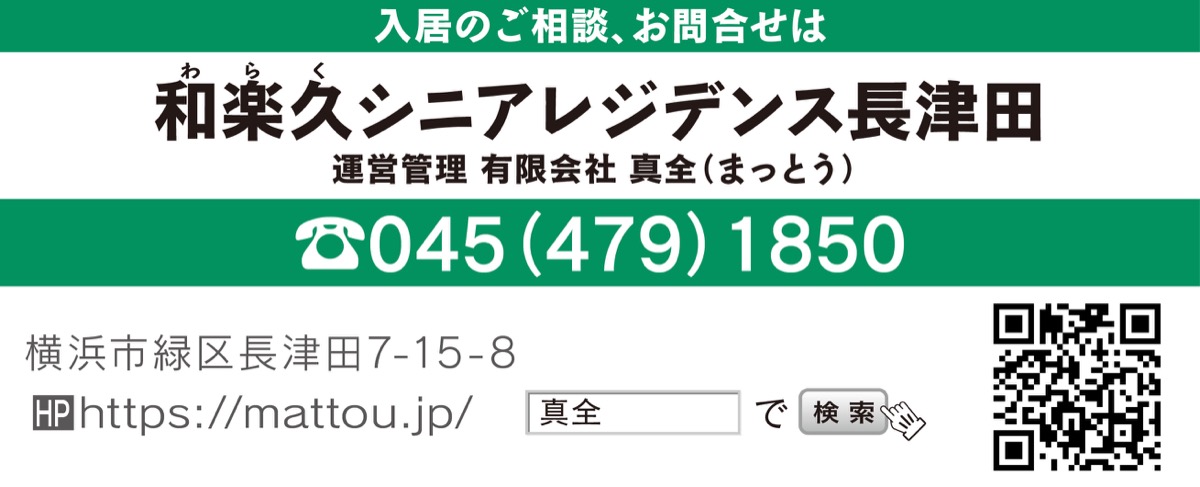 有限会社真全(杉崎俊一代表取締役社長)は、緑区内でサービス付き高齢者住宅(和楽久シニアレジデンス長津田)、小規模多機能型居宅介護施設(シニアサロンデュランタ)、グループホーム(グループホームまっとう)を運営している。
