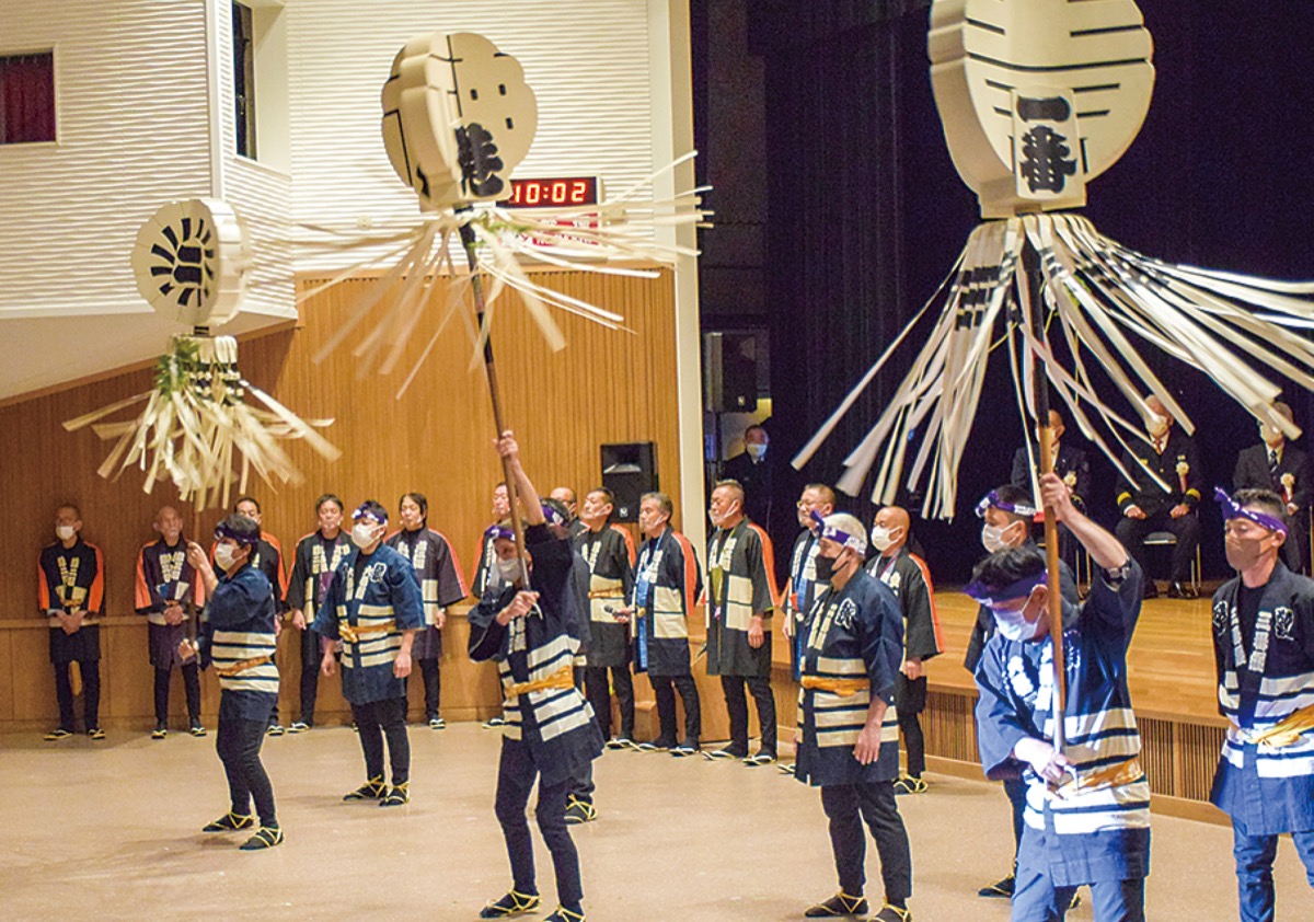式典の前には、古式消防演技として神港鳶職組合による纏振り込みと木遣い唄が披露された。