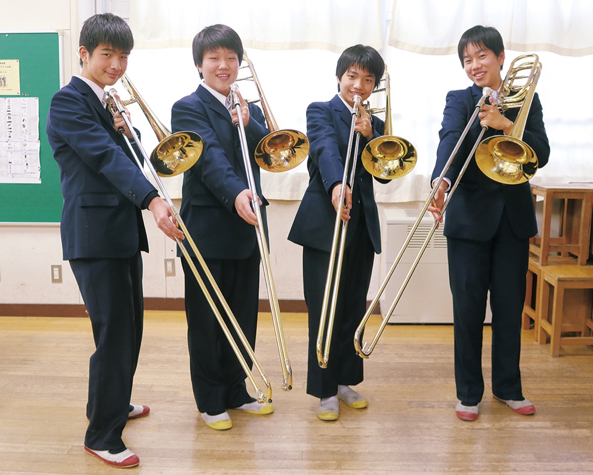 田奈中学校のトロンボーン四重奏チームが1月23日に行われた「第27回東関東アンサンブルコンテスト」中学部門に出場し、全国大会への出場権を得た。