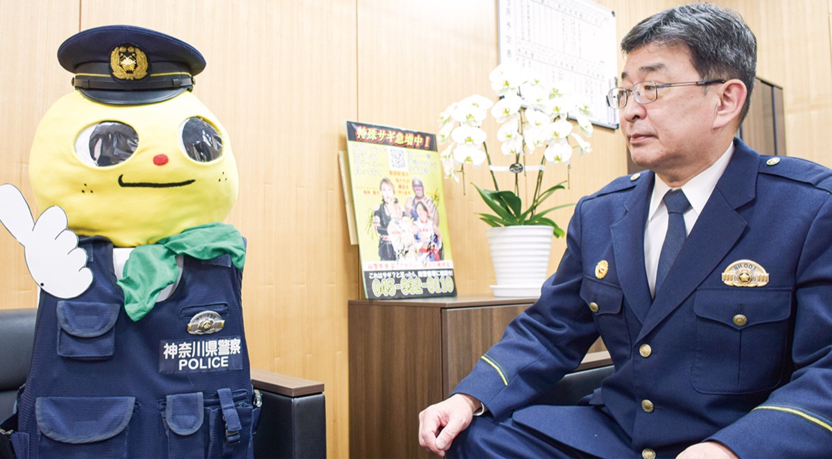 緑区安全・安心まちづくり推進協議会・緑警察署・タウンニュース社共同企画として、渡邊晴彦緑警察署長と同署マスコットキャラの「みどポリ」による対談が実現した。緑署管内の刑法犯は92件(2022年1月〜3月14日現在)で昨年同期比で23件増。渡邊署長に状況などを聞いた。