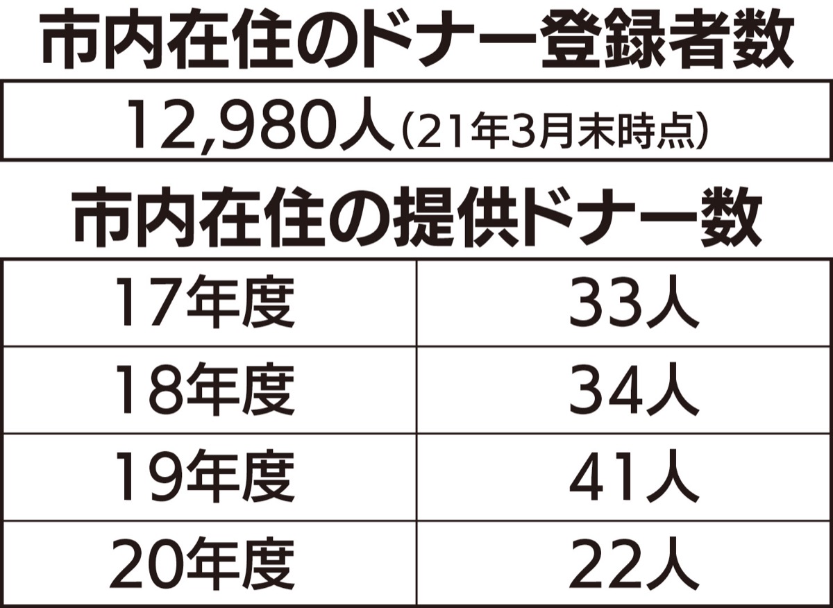 横浜市はドナー休暇制度が進まない状況等を受け、ドナー助成事業を19年度から実施。ドナーの心理的・経済的負担を減らそうと通院や入院等に応じて、7日間を限度に1日2万円を助成している。19年度は25件、20年度は15件、21年度は3月18日までに40件の申請があったという。