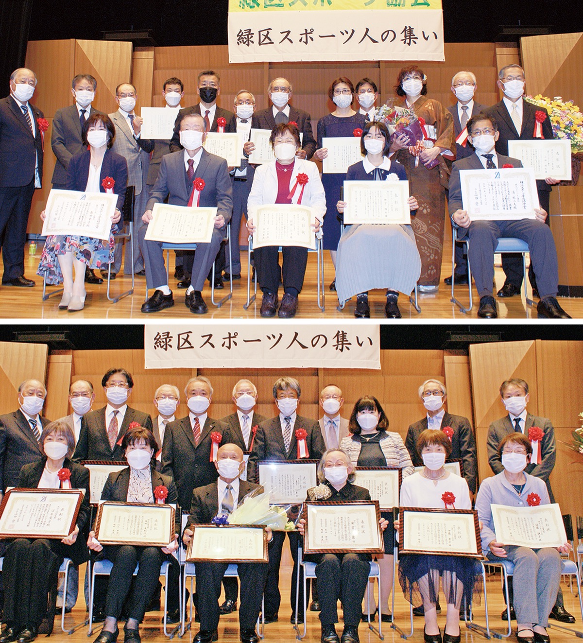 受賞者は以下の通り(敬称略、推薦・所属団体名)〈2021年度〉【緑区スポーツ功労賞】▽安村宏晃(剣道連盟)▽茅野浩之(野球連盟)▽阿部公子(ゲートボール連合)【緑区スポーツ普及賞】▽乘松誠志(野球連盟)▽佐藤由治(剣道連盟)▽中山香(バレーボール協会)▽小林道生(ソフトボール協会)▽山内光(ゲートボール連合)▽吉武正人(少年野球連盟)▽宮下直礼(少年サッカー連盟)【緑区スポーツ特別賞】柳下璃央(横浜白山バドミントンスポーツ少年団)【横浜市スポーツ協会横浜スポーツ普及功労賞】▽武市睛司(スキー部)▽森田幸子(バレーボール協会)▽湯不二夫(バドミントン協会)【横浜市スポーツ協会横浜スポーツ功労賞】▽谷村桂子(バレーボール協会)