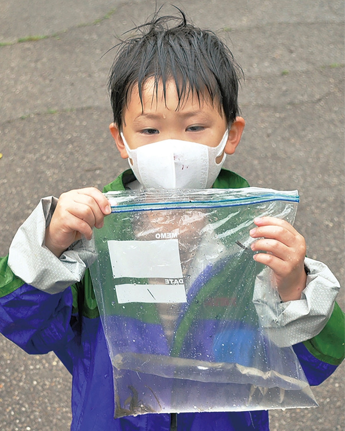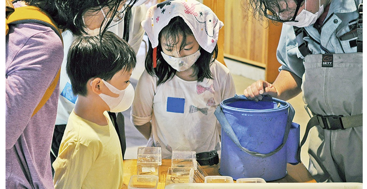 参加者は雨の降る中、同センター周辺の梅田川に入り、網を使って川に住む生き物を採捕した。捕まえた生き物はメダカやアメンボ、ヤゴ、ザリガニなど。参加した子どもからは「いろんな生き物が捕れて楽しかった」との声が上がった。