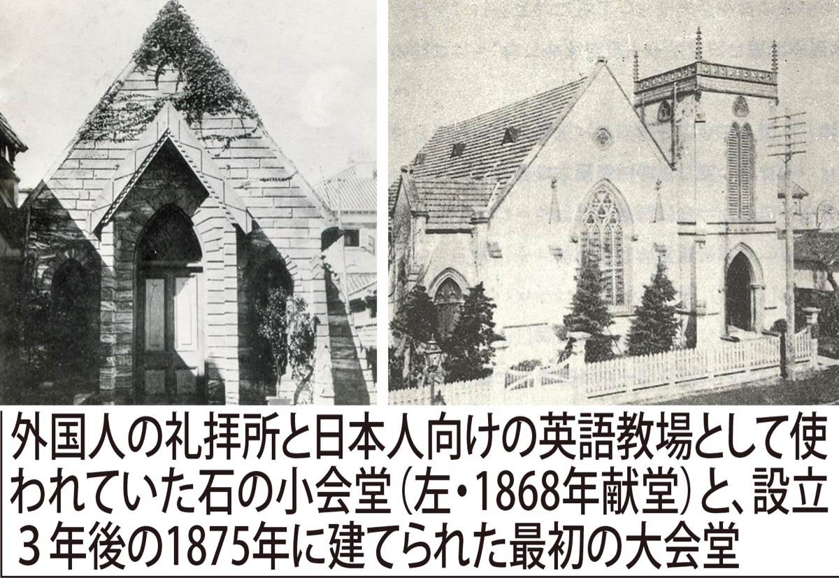 開港後、米国から来た宣教師J・H・バラが横浜で英語私塾を開設。1872年3月10日、聖書をテキストに英語を学んでいた日本人の青年ら9人がバラから洗礼を受け、他所で受洗していた2人を加えた11人で「日本基督公会」を設立。この日が横浜海岸教会の創立記念日となった。キリスト教禁止令が撤廃されるまだ1年前のことだ。現在まで約6千人が洗礼を受けたと推計される。