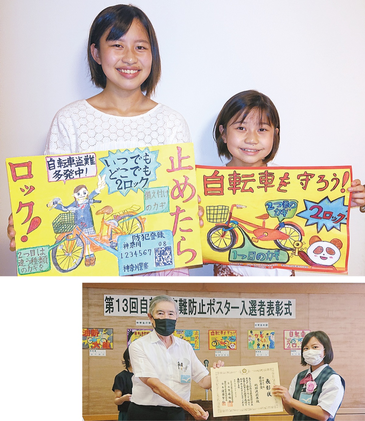 神奈川県自転車防犯協会と神奈川県防犯協会連合会はこのほど、「第13回自転車盗難防止ポスター」の表彰式を県警本部で行った。