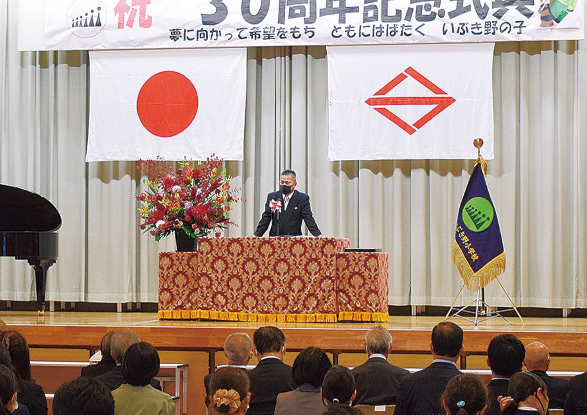 創立30周年記念事業実行委員会の井上敏正会長(同校初代PTA会長)は「開校以来子どもたちと共に、先生、保護者、地域のみなさんと幾多の喜びや苦難を重ねてきた。いつも子どもたちの笑い声と歓声に満ち溢れているいぶき野小を見る度に私は愛着と誇りを感じている」と話した。