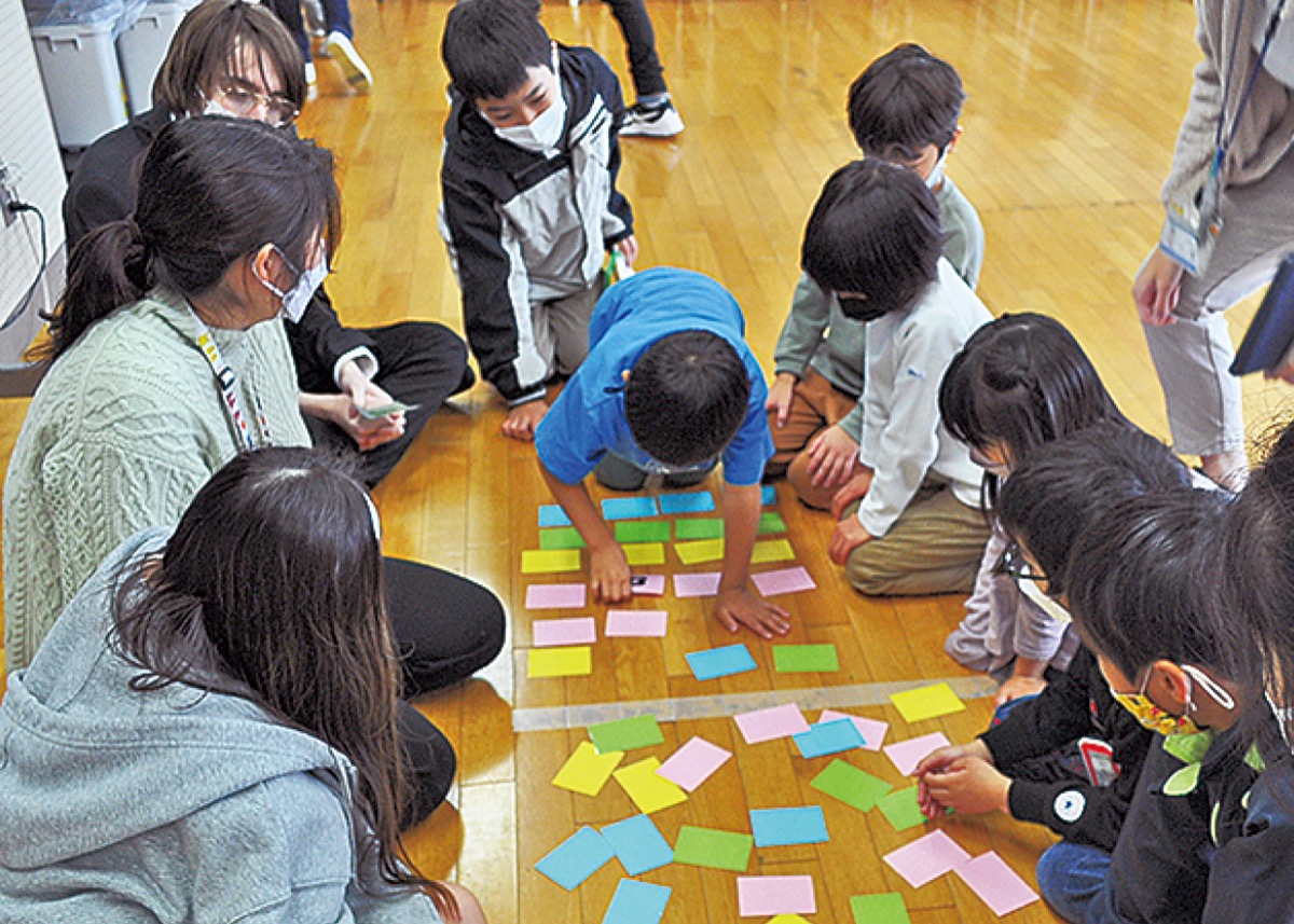 同日児童は、昨年の児童計画委員が企画した記念集会を実施。校内をポイントラリーのように「アルファベットの神経衰弱」や「パズル」などを楽しみ、池田彩葉さん(6年)は「障害物リレーが特に楽しかった」と話した。