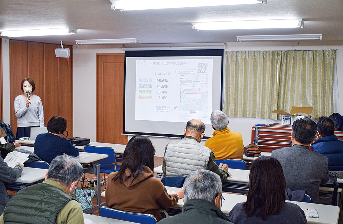 白山地区連合自治会(三田修会長)は12月3日、白山自治会館で「女性視点を盛り込んだ避難所作り講座」を実施した。同講座は緑区が今年度から開始した「緑区地域防災アドバイザー派遣事業」の一環で、自治会などが進める防災の取組を支援する目的で防災の専門知識を有するアドバイザーを派遣するもの。