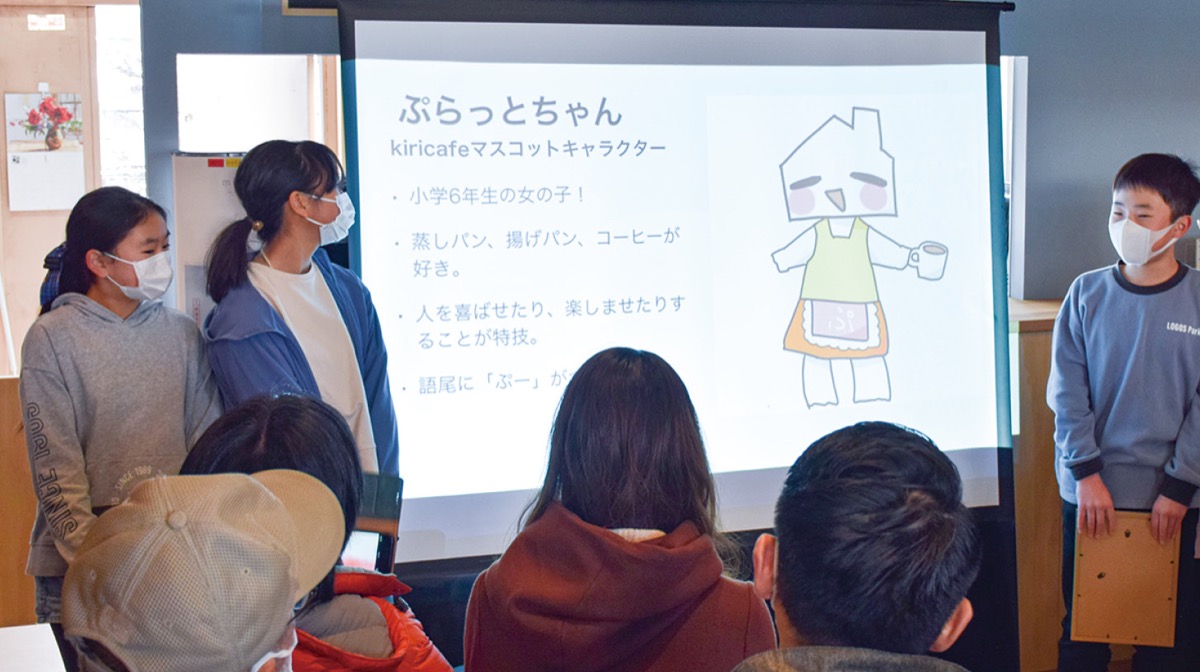 その後は児童たちが考えたメニューやキャラクター、作成した消しゴムハンコなどをグループごとに発表。メニューレシピなどが根岸代表らに手渡された。また、児童から同NPO法人メンバーに対して歌(明日を信じて)のプレゼントがあり、会場では大きな拍手が起こった。