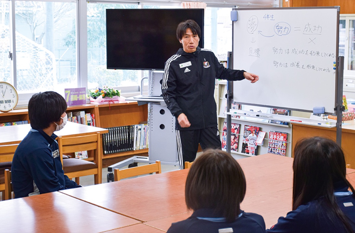 波戸氏は「サッカー教室はみんな楽しく体を動かせたと思う。講話は真剣に聞いてくれた。少しでもヒントになれば嬉しい」と思いを語った。