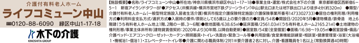 3年前に開設した介護付有料老人ホーム「ライフコミューン中山」は、中山駅から徒歩4分ほどの好立地にある。駅前では買い物を楽しむことができ、大きな公園もあるので散歩にも最適な環境だ。運営主体の「木下の介護」は2月25日から3月5日まで、見学会を実施する。時間は午前10時から午後4時まで。