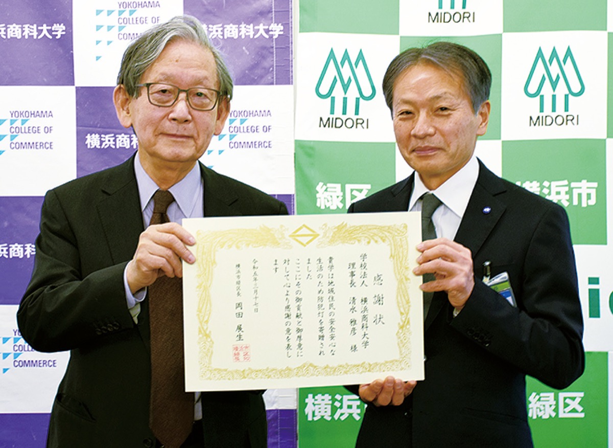 緑区は3月17日、横浜商科大学へ感謝状を贈呈した。