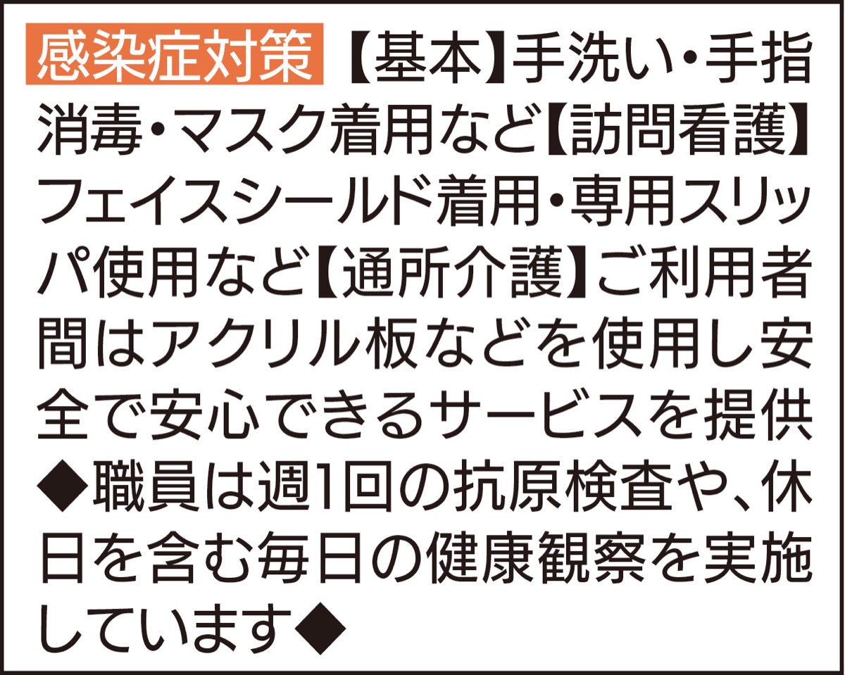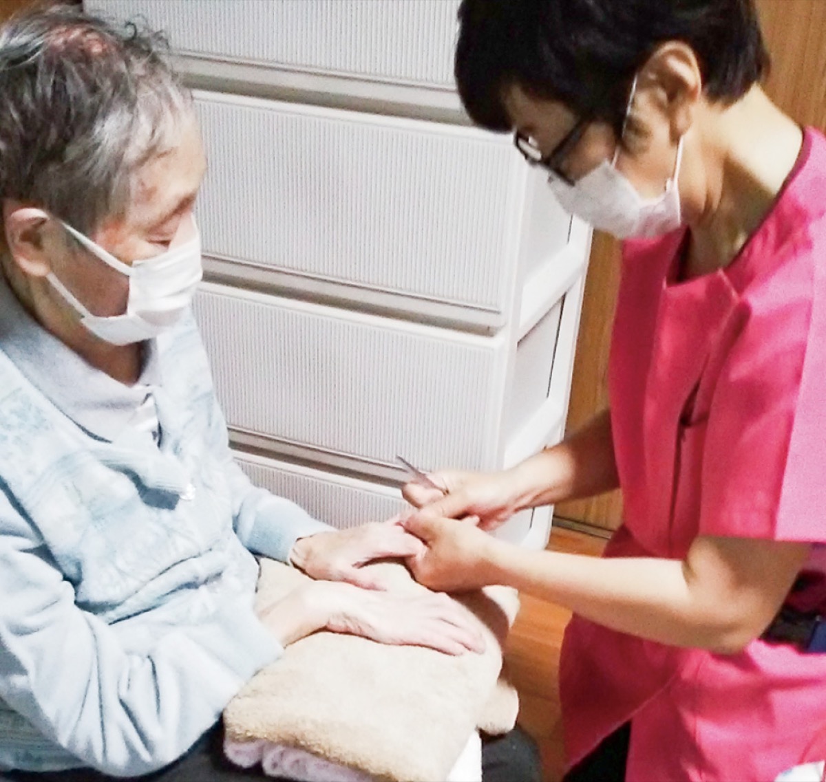 看護師の小川さんは「利用者さんが安心した生活が送れるよう、ケアを通して個々の気持ちに寄り添っている。医師や家族に言えないことなども話せるような関係性を作り、訪問時に一度は笑顔になって頂くようにしている」と語る。