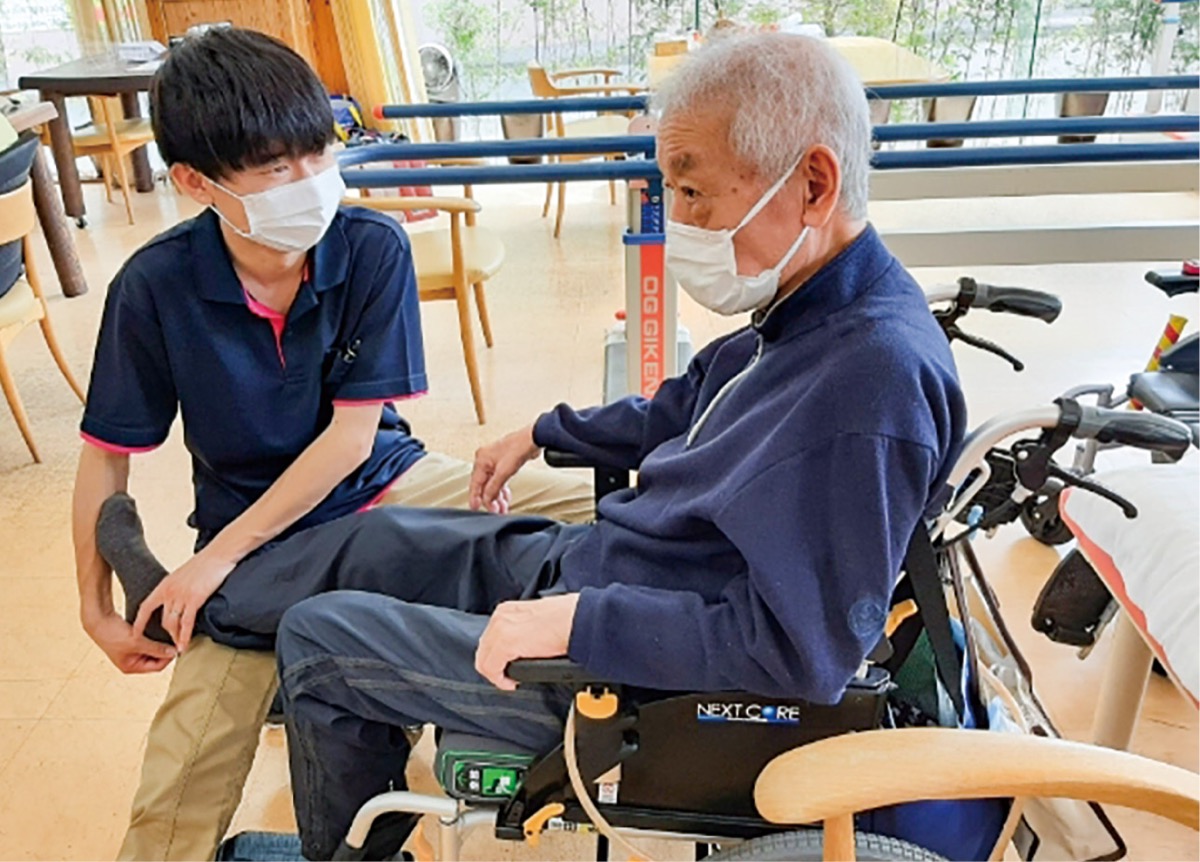 理学療法士の山口さんは「今、力を入れているのは未病対策。病気になってから治すのではなく、病気になりにくい体作りをすることで利用者の健康維持を目指している。利用者の歩行に関する悩みが解決するとやりがいを感じる」と笑顔。