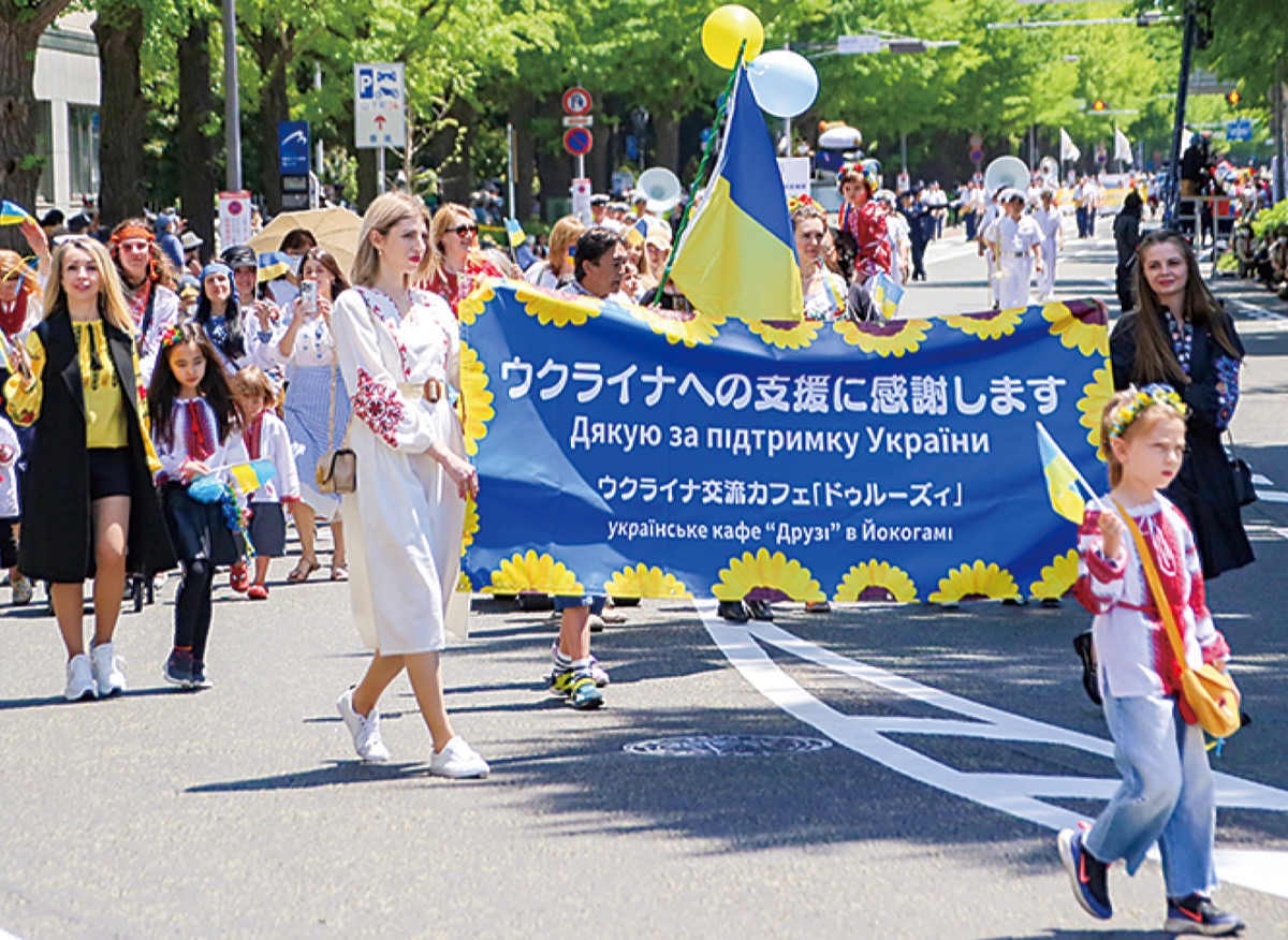 71回目となったパレードは、市の花「バラ」をテーマに演出し、「国際性」にスポットを当て、国際交流パレードを実施。市がウクライナ避難民の交流拠点として設けた「ドゥルーズィ」の関係者は「ウクライナへの支援に感謝します」と書かれた幕を掲げ、沿道から拍手が送られていた。