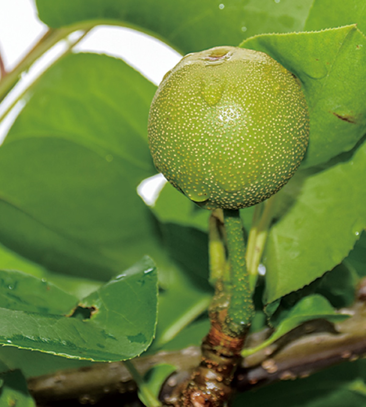 同園の落合清治さんは「春先の気温が高かったので今年は開花も早かった。現在の生育状況は順調。良いナシが収穫できるのではないかと期待している。多くの皆さんに美味しいナシを味わってもらえるように、収穫に向けて一生懸命手入れをしていく」と笑顔を見せる。同園では8月上旬から幸水、8月下旬から豊水の収穫・販売を見込んでいる。