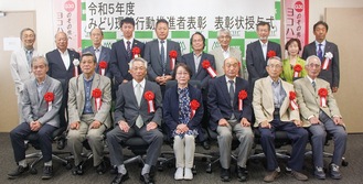 「ヨコハマ3R夢プラン」の推進のほか、地域での脱温暖化活動や美化活動などに尽力し、功績のあった個人・団体を、みどり環境行動推進協議会が表彰するもの。今年度は個人8人と、4団体が表彰され、同協議会の会長でもある佐藤康博区長から表彰状が手渡された。佐藤区長は「どれもが地域に根差し、模範となるような素晴らしい活動。コロナ禍で不便があった中、活動を継続した皆さまに感謝します」と称えた。