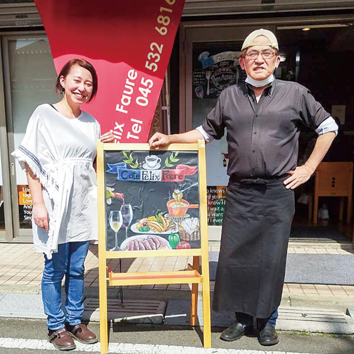 栃木県出身の鵜野沢さんは母親らの影響で、幼少期から絵を描くことが日常だった。勤務していた会社でも手描きの自社広告などを担当する経験をしたという。結婚を機に横浜に移り住んだ鵜野沢さんがチョークアートを描くきっかけになったのが、中山のフレンチレストラン「カフェ フェリックス フォール」で働き出したこと。オーナーシェフの宮地昌彦さんが切り盛りする同店にあった店内の黒板にワインやチーズ、コーヒーなどのイラストを描いた。「少しでもお店を盛り上げることができればという思いだった」と当時を振り返った。店内のチョークアートは常連客らに好評だったが、新型コロナウイルス蔓延の影響で多くの人の目に触れる機会が減ってしまった。また、鵜野沢さん自身も第3子の妊娠で同店を辞めることに。