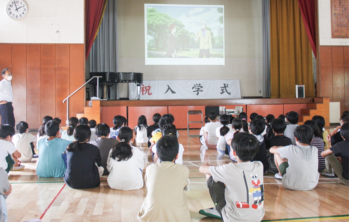 石塚さんは「アニメは子どもたちにも分かりやすくなるよう、言葉遣いに工夫した。少しでも役に立ててうれしい」、根岸校長は「自分に何ができるか考える機会を持つことが大事。児童のやる気につながったと思う」と話していた。