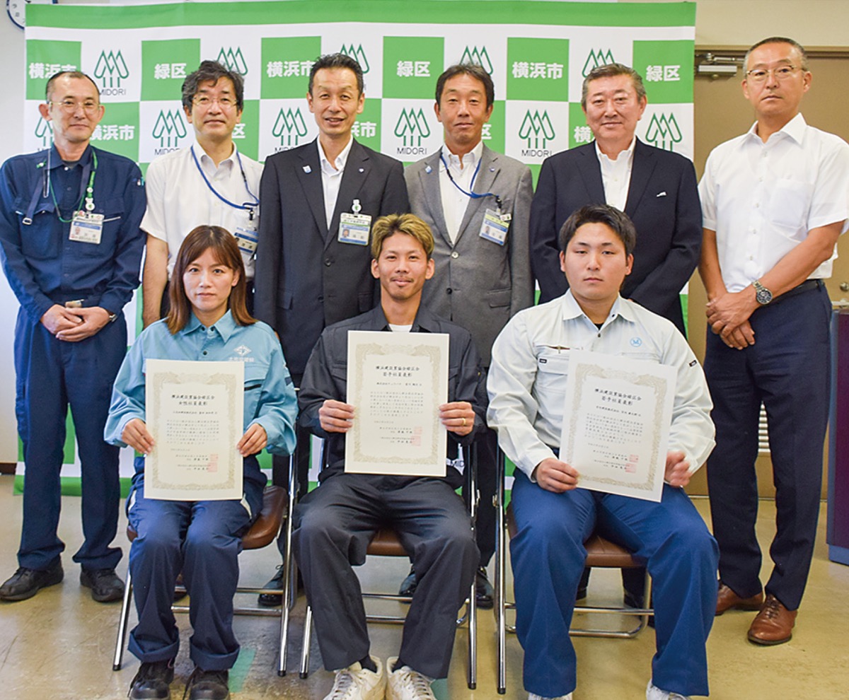 同区会に加盟する企業の社員の技術や意欲向上を図り、横浜市における継続的な品質の向上を目指すことを目的に2021年度に新設された同表彰。昨年度までに若手社員や女性社員7人を表彰してきた。