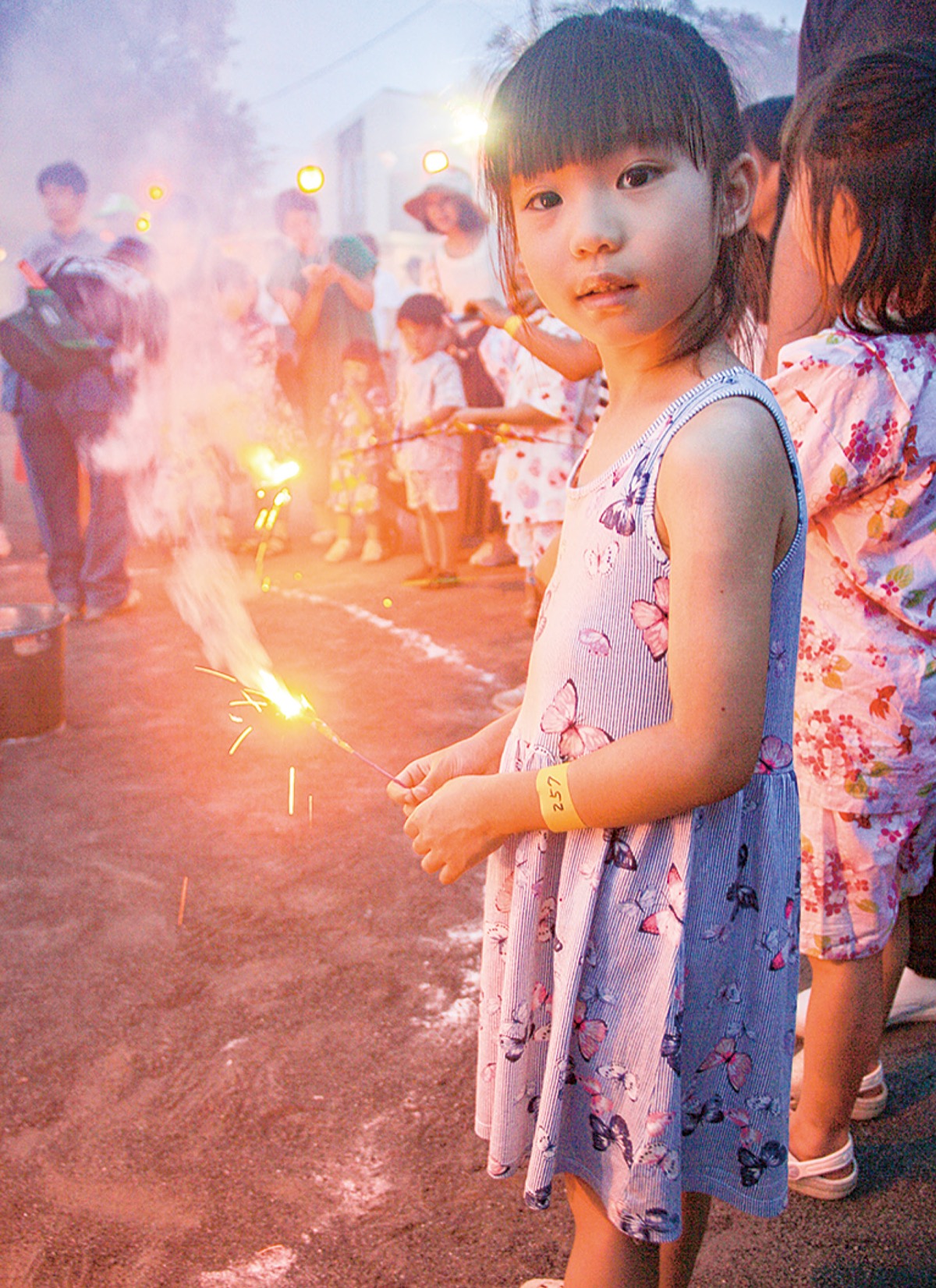 また、子ども向けの花火大会も行われ、多くの子どもたちが輪になって線香花火などを楽しんでいた。