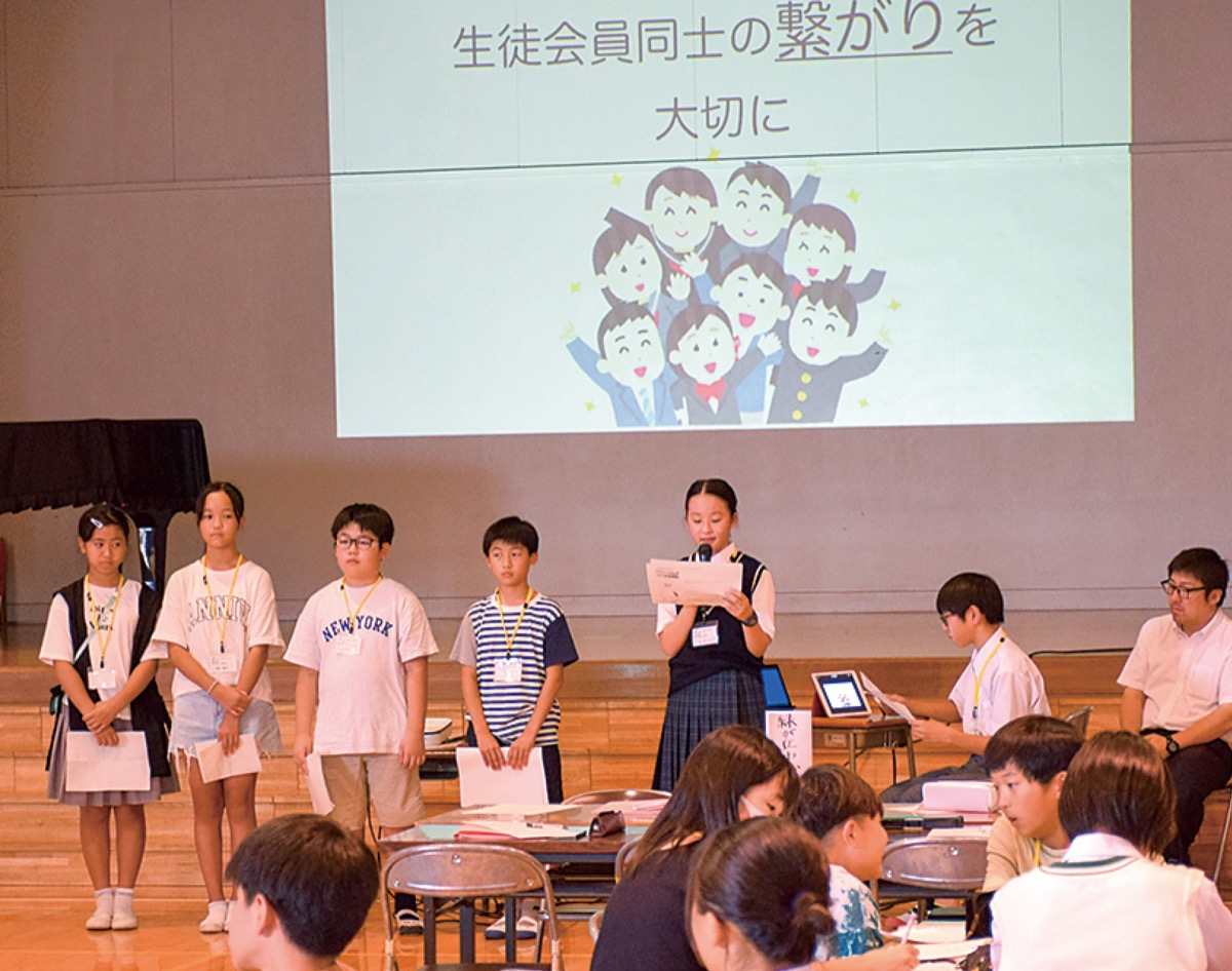 発表では、「いじめは人によって感じ方が違うのではないか」、「他人を認め合えない環境が原因になるのではないか」といった話し合いの結果や、「アンケート」、「共通点探し」、「あいさつ運動」、「(優しい言葉遣いの)ふわふわ言葉を校内に掲示」など各校でのいじめ未然防止に向けた取組が紹介され、情報共有された。