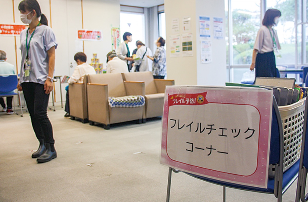 フレイル(虚弱状態)や口腔機能などをチェックできるコーナーも登場。また、飲食販売も行われ、来場者たちがコーヒーを味わいながら、互いに楽し気に語り合う様子も見られた。
