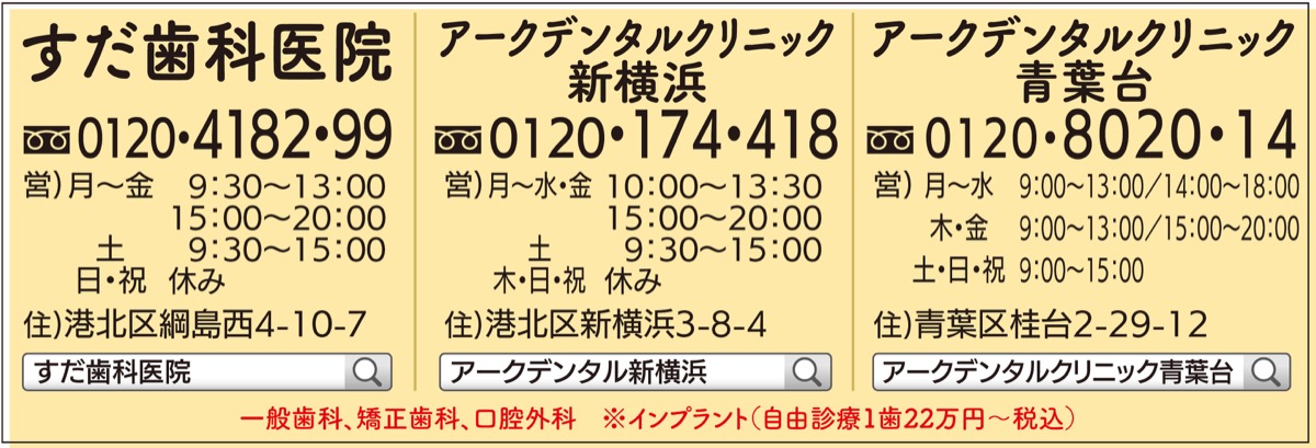 医療法人社団翔栄会は港北区と青葉区に3つのクリニックを運営し、それぞれインプラントの無料相談を行っている。