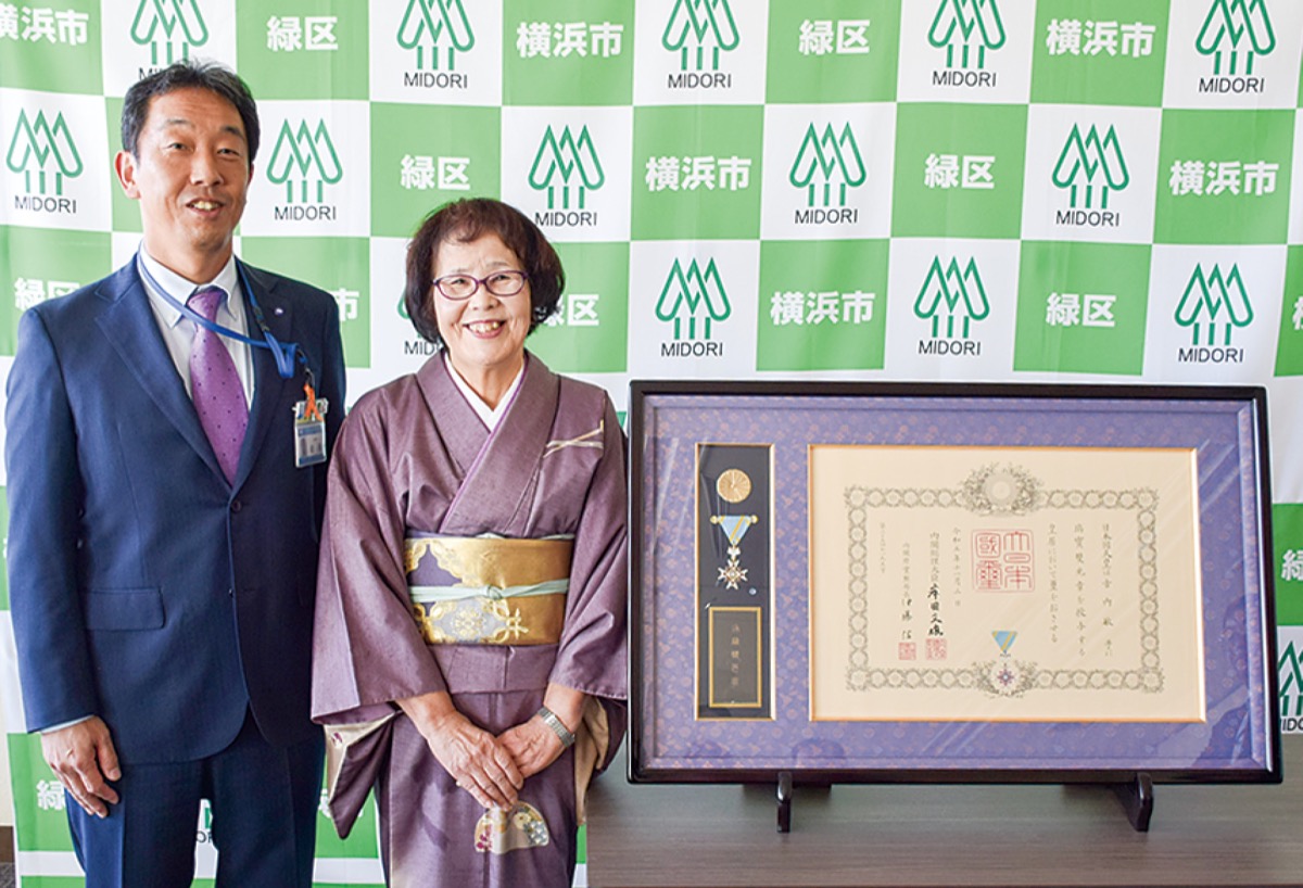 11月3日に発令された秋の叙勲で区内の古内敏子さんが、行政相談活動における功績が認められ瑞宝双光章を受章した。これを受け古内さんは28日、緑区役所で佐藤康博緑区長を表敬訪問した。