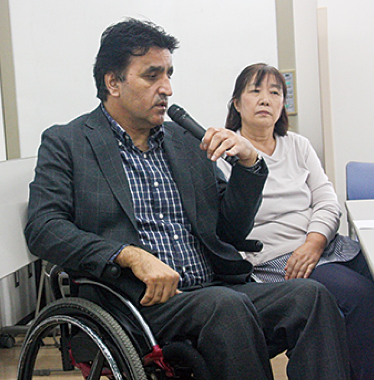 講師を務めたのはイラン出身で、来日後の事故で車いす利用者となったパシャイ モハメッドさん=人物風土記で紹介=。障害者支援のためイランに車いすなどを贈る活動を継続しているパシャイさんが、両国のバリアフリー設備の違いなどを解説した。参加者からは「障害を負ったことをばねに、支援活動を続けていて素晴らしい」などの声が聞かれた。