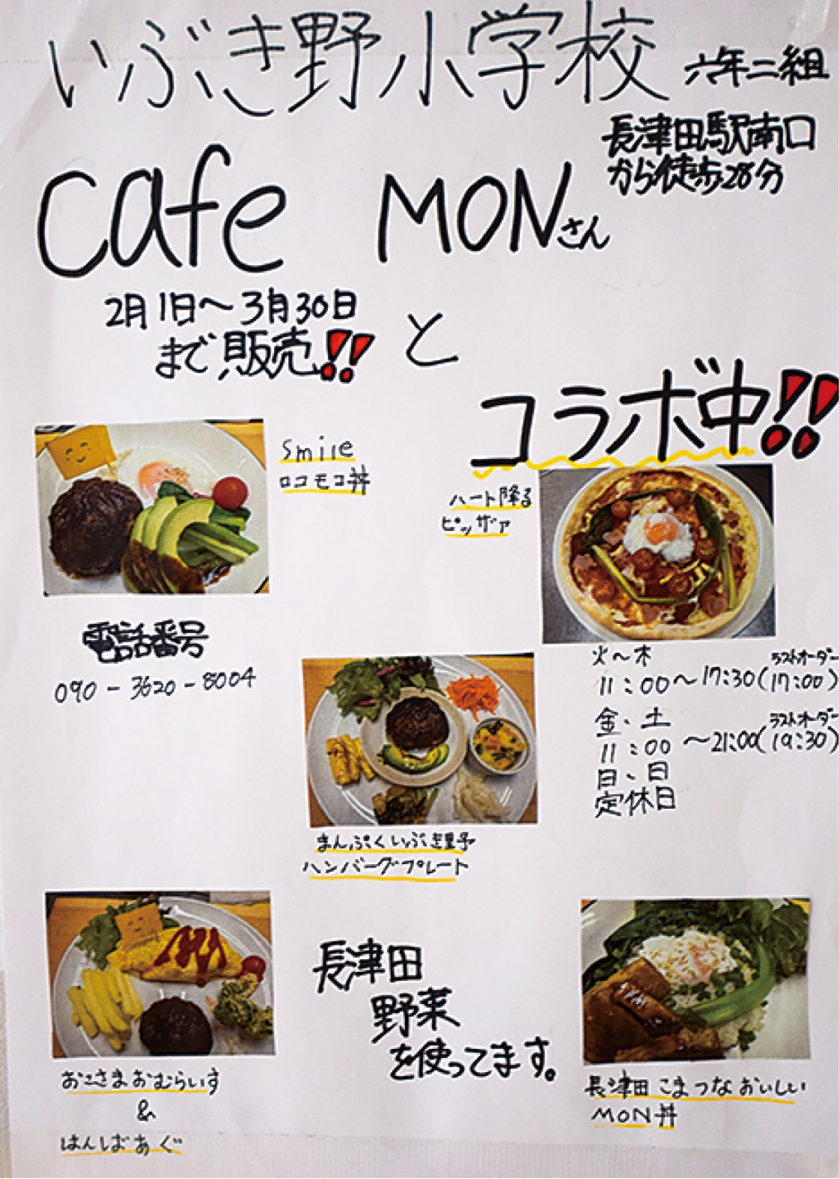 「cafe Mon」(長津田みなみ台5の24の12)は現在、近隣のいぶき野小学校6年2組の児童が考えたメニューを取り入れた料理を提供している。