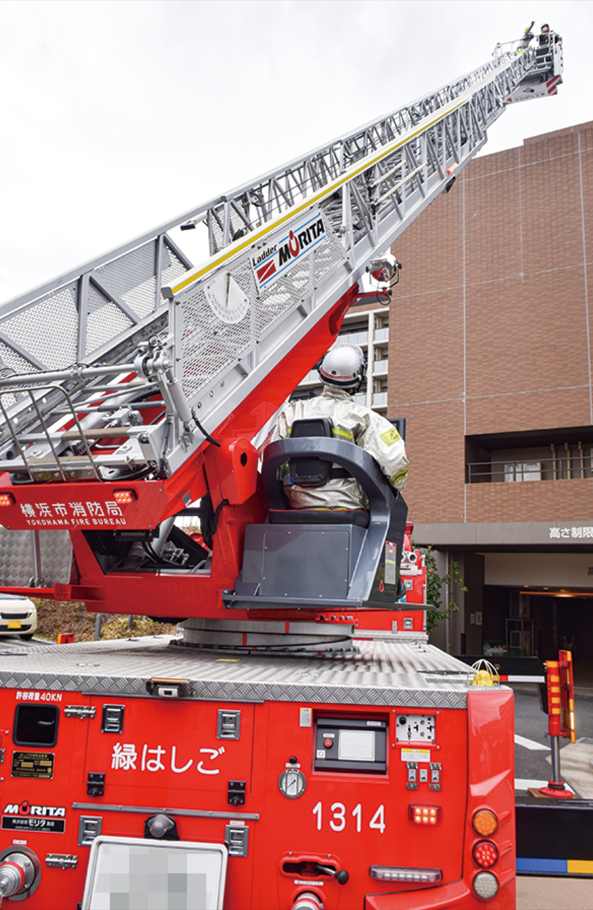 はしご車で救出訓練披露