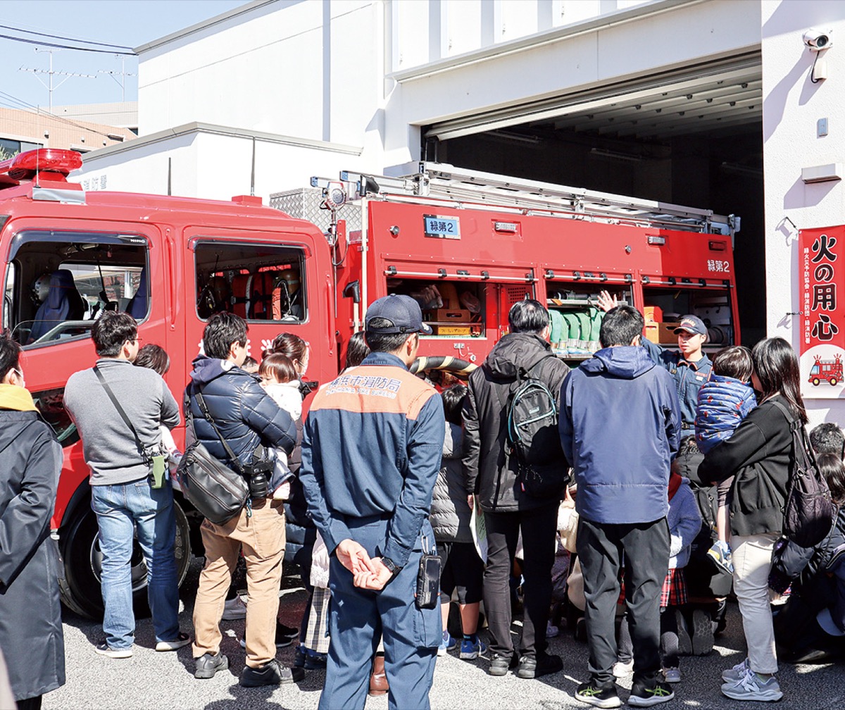 2日間にわたって開催された「みどりーむまつり」で、3月3日には緑消防署で親子消防署体験が行われた。