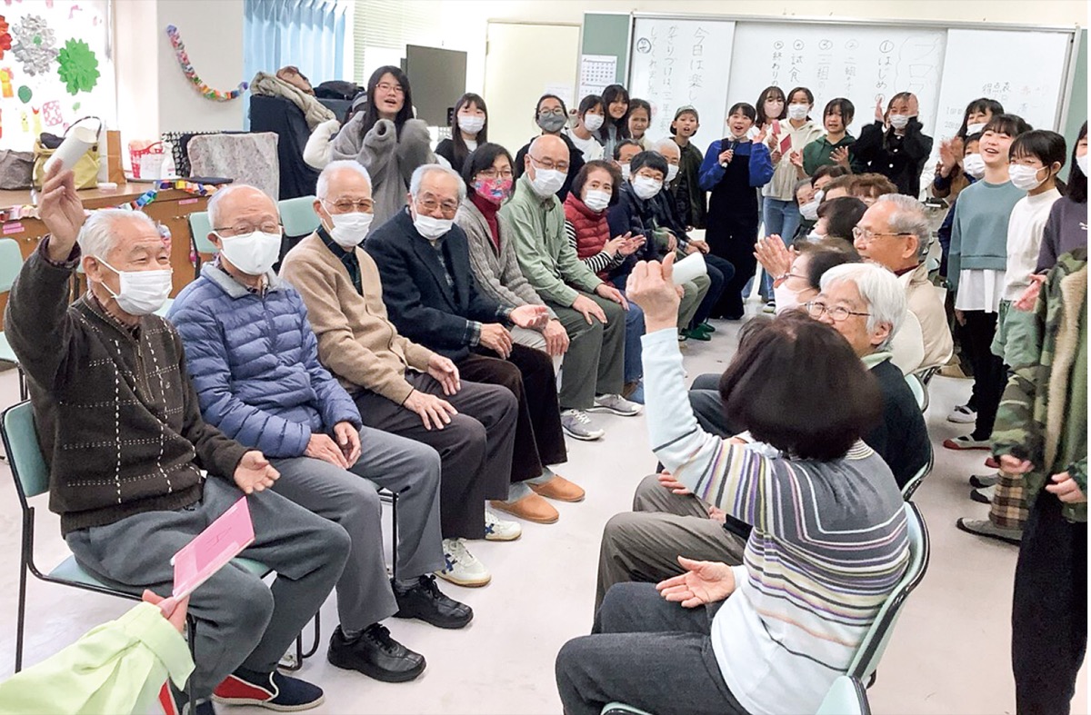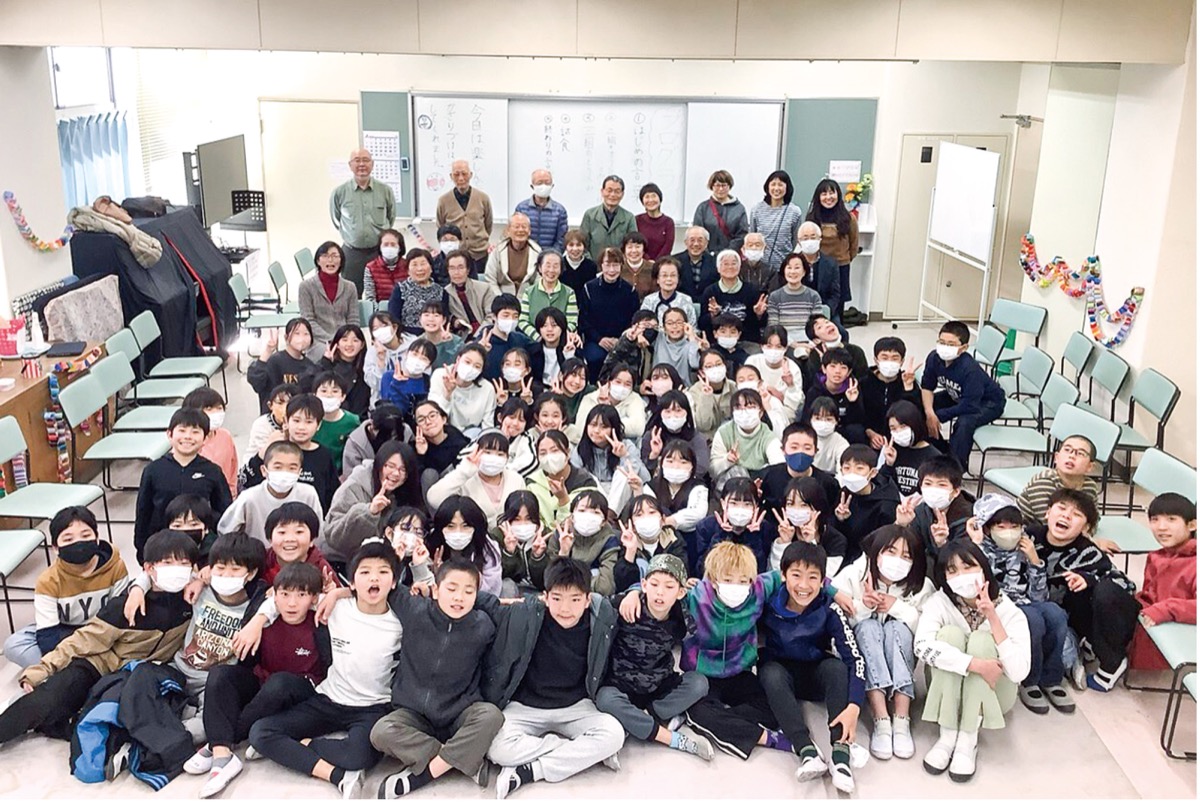 東本郷小学校の5年生の児童たちは3月1日、同校コミュニティハウスに地元の高齢者ら24人を招き「オリジナルスポーツと出汁を楽しむ会」を開催した。今年度、地域との関係を深めようと総合的な学習の時間の取組を進めてきた子どもたち。この日はその集大成として同会を実施した。