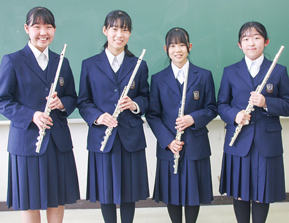 全国大会にあたる本選考会にフルート四重奏で臨むのは同校3年生の上田真子さんと、いずれも2年生の多胡百菜さん、稲村有純さん、橋本桜依さん。CD審査による予選考会では息の合った演奏で『夏山の一日』を録音し、審査員から「4人の音がブレンドされ、第1楽章はメロディのつなぎが滑らか」と高評価を得た。