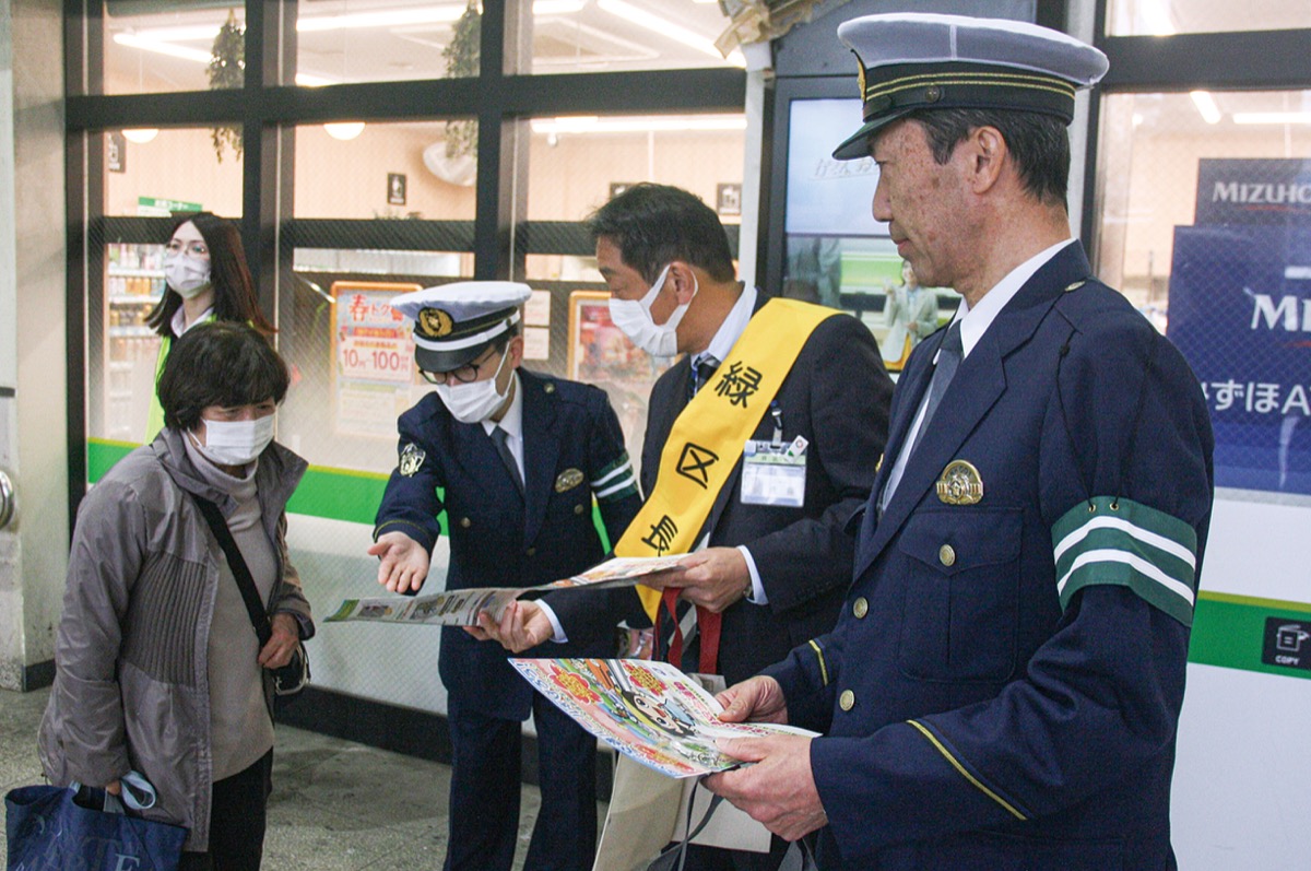 4月6日から15日まで続けられている春の全国交通安全運動の開始に先立ち、緑区交通安全対策協議会は4月5日、JR鴨居駅周辺で交通事故防止に向けた啓発キャンペーンを実施した。
