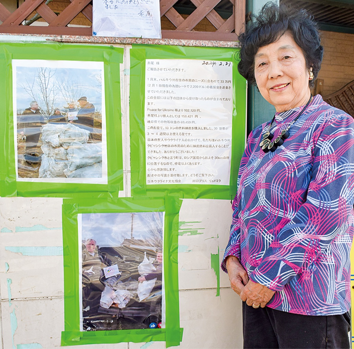 鴨居在住の赤尾友子さんはこのほど、自身が復興支援のために救援金を寄付したウクライナ現地から、燃料練炭が届けられたと報告を受けた。