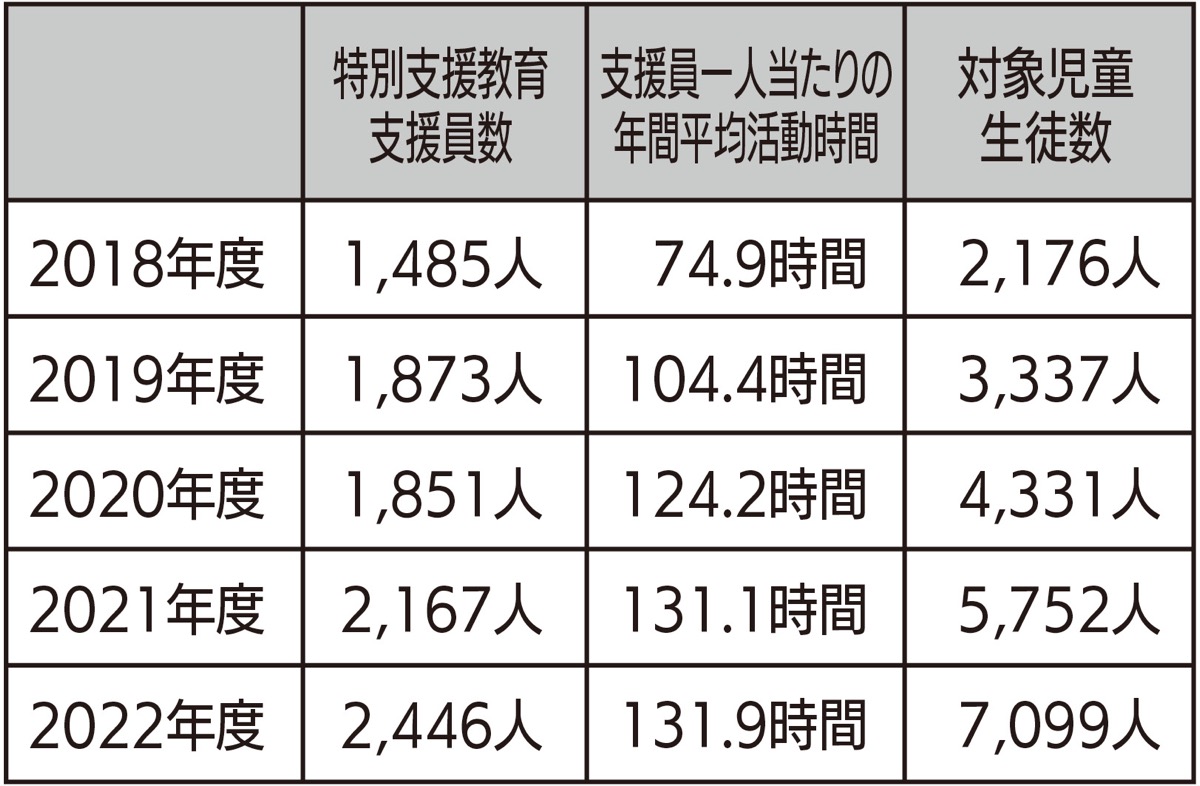 市教委の担当者によると、当初県内の最低賃金は700円台だったが19年には1000円を超え、「特別な支援や配慮が必要な児童生徒に対応する業務への謝金が500円では厳しい」といった意見が複数寄せられていたという。加えて、対象児童生徒が18年度から22年度で3倍以上に増え、支援員1人当たりの平均活動時間も約1・7倍に増えている現状もある。担当者は「近年は物価高や、有償ボランティアとは言え一般のパート勤務の方が賃金が高い現状があった」と謝金引き上げの背景を説明する。