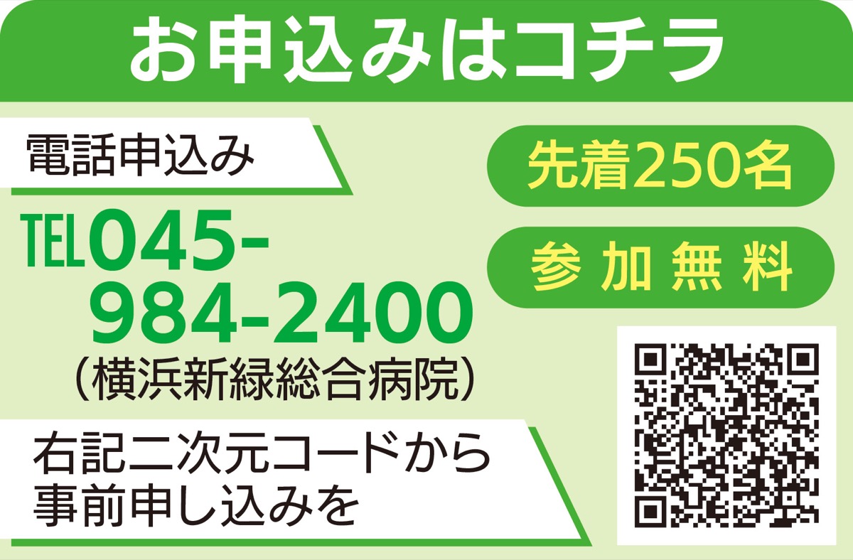 定期的に地域向けの健康講座を開催する横浜新緑総合病院が5月11日(土)、「みんなの健康講座inみどりアートパーク」をみどりアートパーク(長津田2の1の3)で開催する。しらはた胃腸肛門クリニック横浜との共催、緑区役所福祉保健課後援。午後2時〜3時35分(午後1時30分開場)。定員250人。